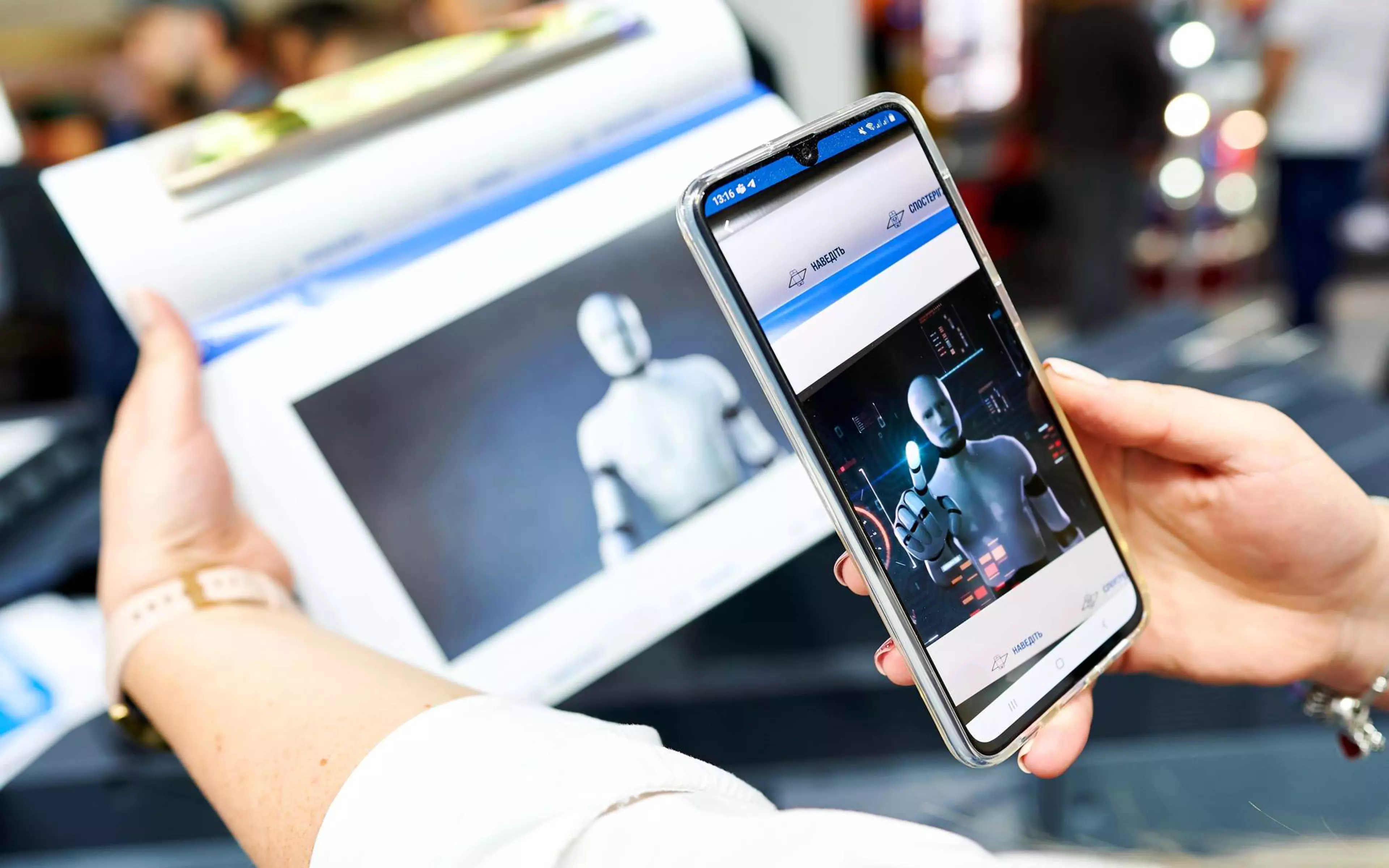 В якості основи експозиції було використано машину для цифрового друку AccurioPress C3080, оснащену системою автоматичного контролю якості та genARate – інструмент для створення проектів з доповненою реальністю.